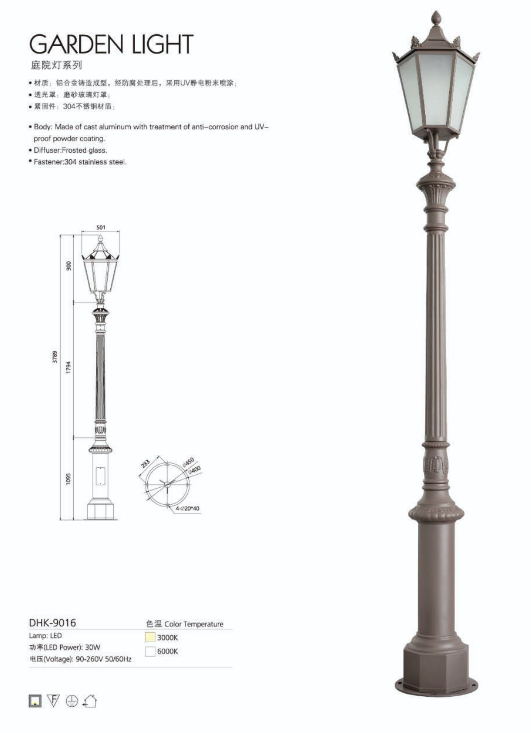 Body: Made of cast aluminum with treatment of anti-corrosion and UV-proof powder coating.